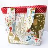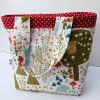 A girl’s tote bag made from pretty forest scene cotton fabric and lined with a contrasting polka dot cotton fabric.