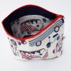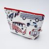 Handmade from quality campervan and Vespa scooter cotton fabric, lined inside with a contrasting fabric and with a zip for easy access. Two interior pockets to hold small items.